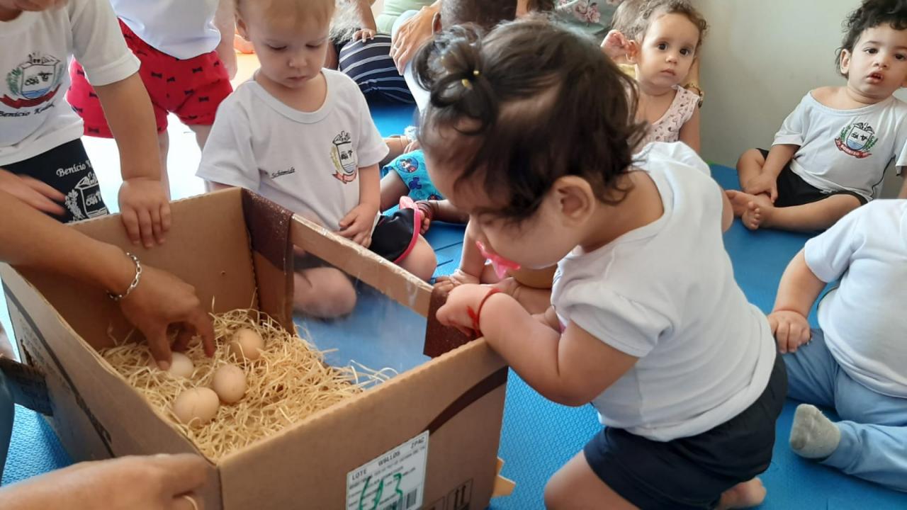 Projeto do Cemeis Doce Infância ensina aos alunos como nascem os pintinhos