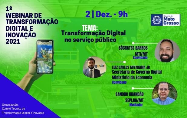 Última roda de conversa do “1º Webinar de Transformação Digital & Inovação 2021 Mato Grosso” será transmitida ao vivo pelo canal da Seplag-MT no YouTube