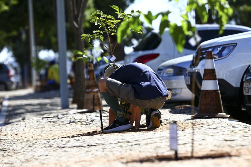 Programa de sustentabilidade do Planalto planta ipês em estacionamento