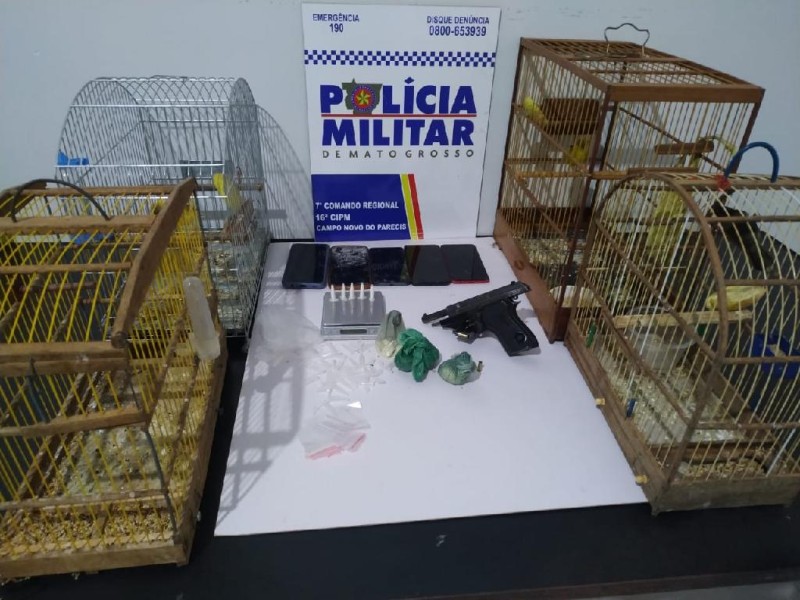 Os pássaros eram mantidos em gaiolas sem documentação de órgãos competentes, o flagrante aconteceu durante apreensão de drogas em uma residência