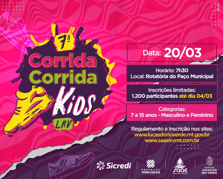 Abertas inscrições para a 7ª Corrida Kids de Lucas do Rio Verde