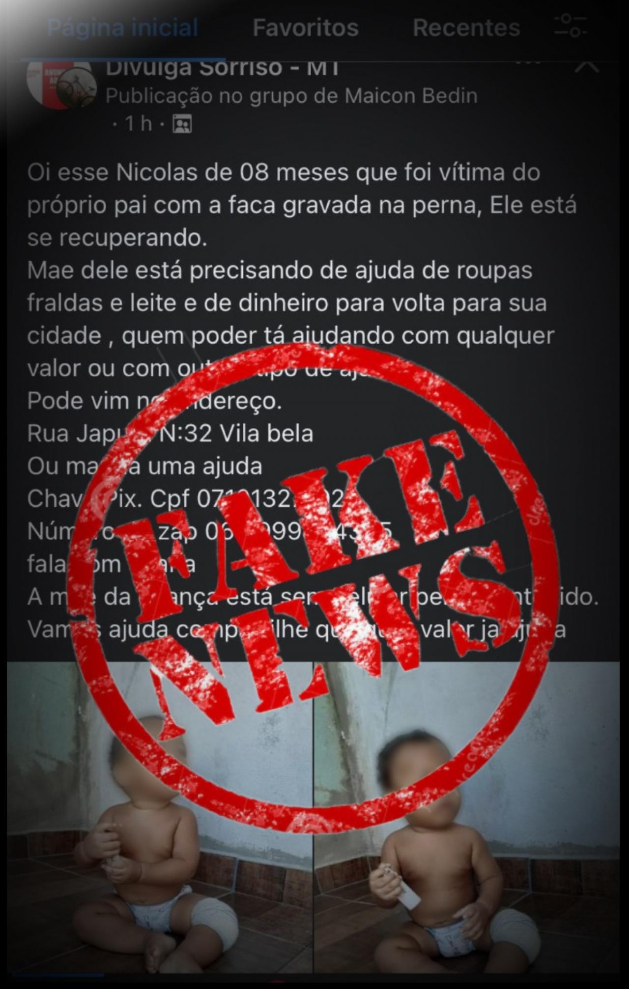 Link que circula nas redes sociais solicitando ajuda à mãe do bebê esfaqueado na perna é falsa