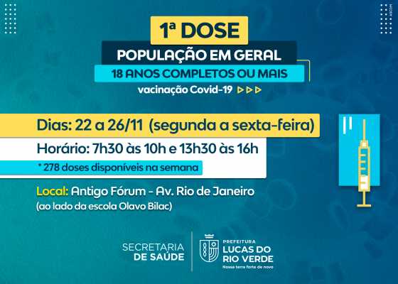 Covid-19: primeira dose para pessoas com 18 anos completos ou mais continua disponível
