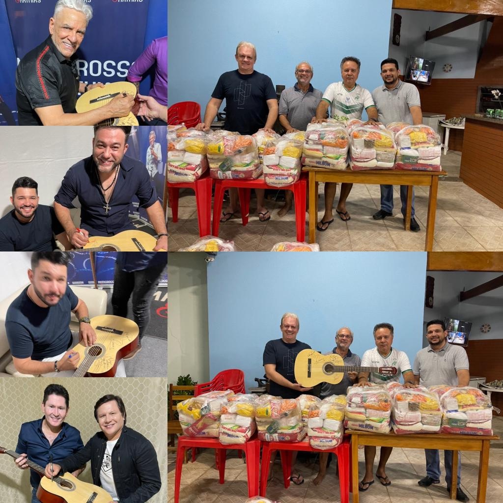 Os artistas Felipe e Ferrari, Matogrosso e Mathias e Gian e Giovani autografaram um violão que será leiloado