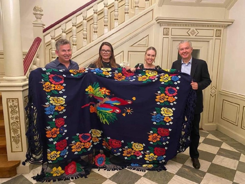 Primeira-dama Virginia Mendes apresenta artesanato mato-grossense a casal de embaixadores na Dinamarca