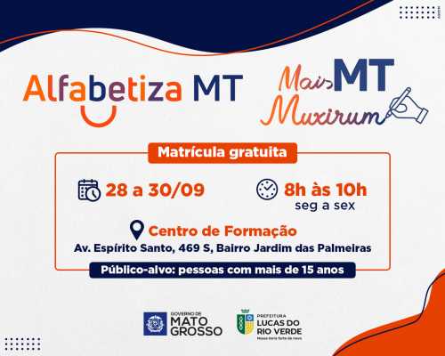 Matrículas para alfabetização de adultos estão abertas em Lucas do Rio Verde