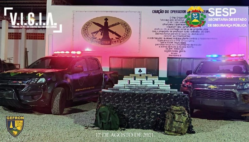 Prejuízo ao crime foi avaliado em R$ 962 mil; entre as drogas apreendidas 35 pacotes eram de cloridrato de cocaína e cinco de pasta base