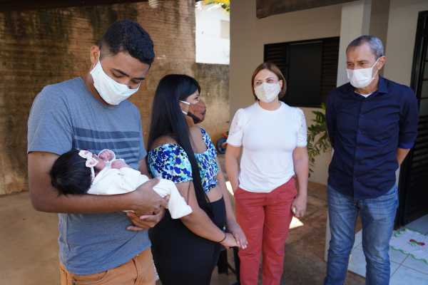 Nascida durante a Semana do Bebê, prefeito e primeira-dama parabenizam família em visita