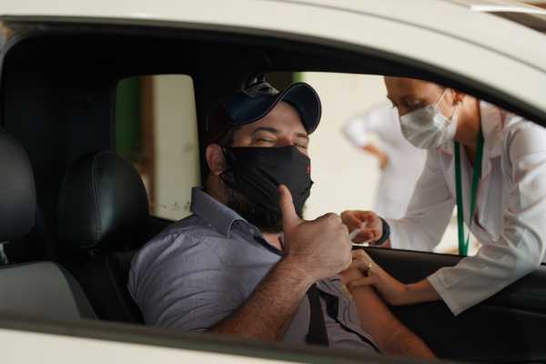 Pessoas com mais de 32 anos serão imunizadas no drive-thru de amanhã