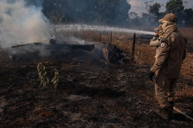 Corpo de Bombeiros é acionado para conter incêndio dentro de propriedade rural em Poconé