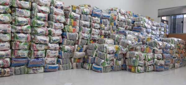 Famílias beneficiadas pelo Cras recebem cestas básicas e produtos de limpeza