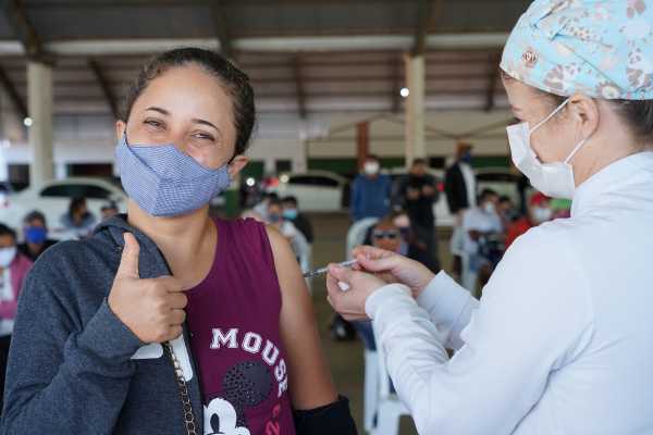 A vacinação ocorreu no Parque de Exposições no formato drive-thru e com acesso para pedestres