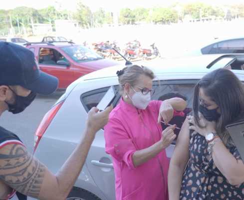 Neste domingo (18), 1.234 luverdenses compareceram como pedestres ou no drive-thru da vacinação