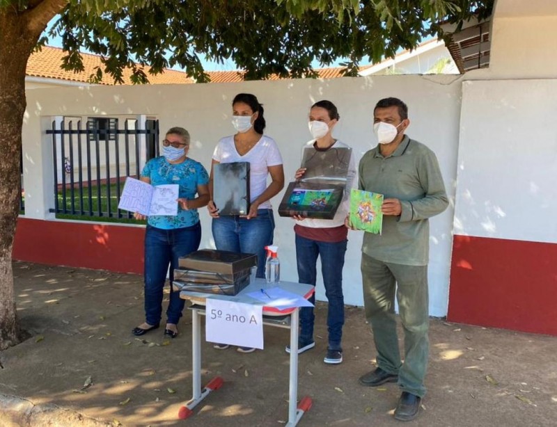 Cada aluno recebeu um kit com pincéis, lápis de cor, tinta, papel e o livro que serviu de inspiração para o projeto, “Beni o inventador de mundos” de João Luiz do Couto e ilustrações de Emol
