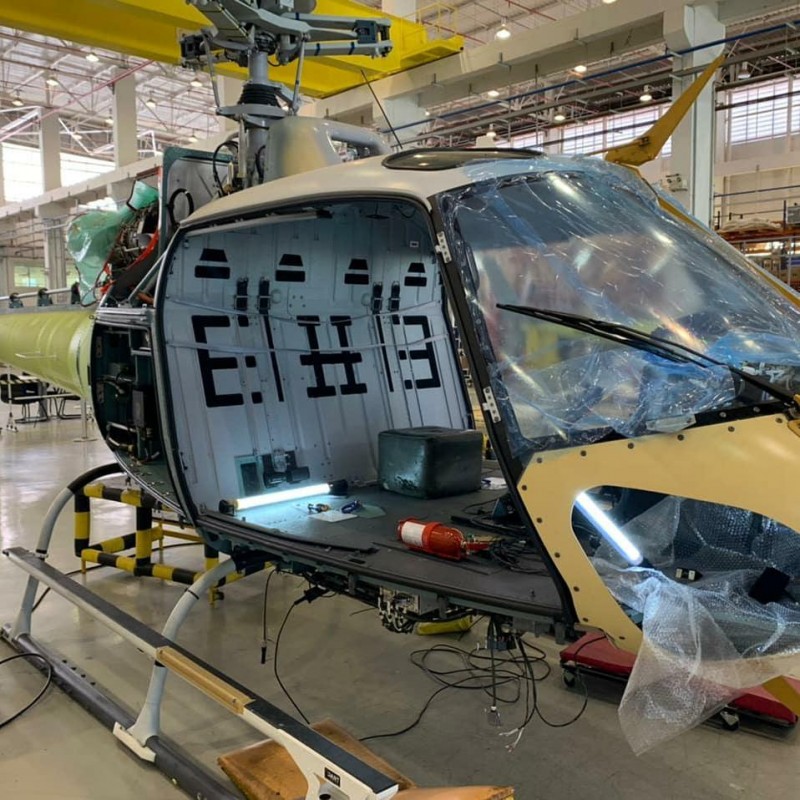 O helicóptero é da marca Airbus, modelo AS 350 B3, também conhecido como "Esquilo