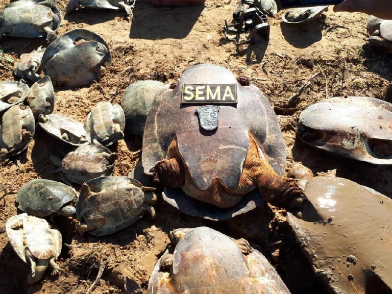 Batalhão Ambiental e Sema resgatam tartarugas encontradas em sacolas no Rio das Mortes