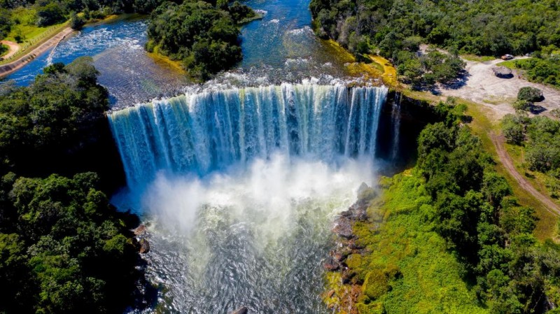 Imensa cascata fica localizada dentro da reserva indígena e em meio à vegetação da floresta mato-grossense