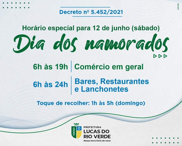 Decreto estabelece horário especial para o comércio no Dia dos Namorados em Lucas