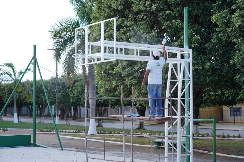 Será feita troca da pintura das grades, linha, traves e instrumentos esportivos