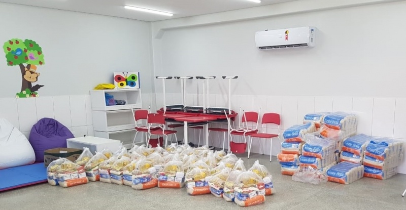 Kits de merenda escolar são distribuídos às famílias de alunos durante pandemia