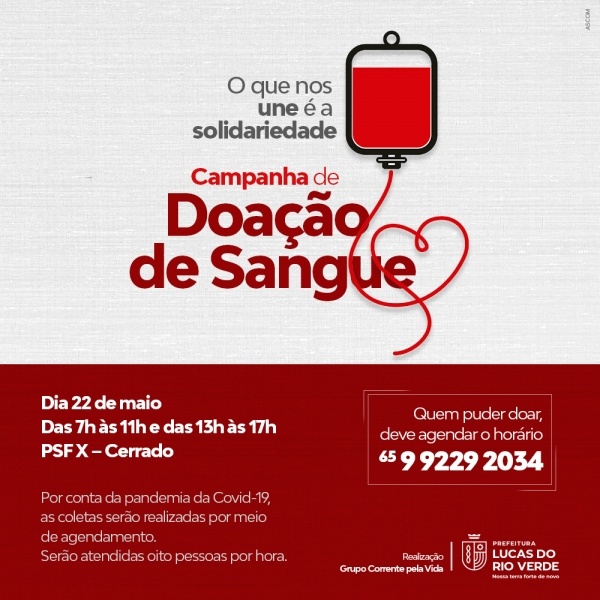 Campanha de doação de sangue será realizada neste sábado (22)