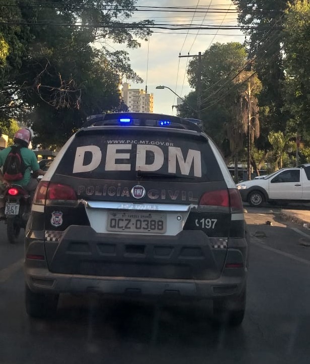 A equipe da Delegacia Especializada de Defesa da Mulher de Cuiabá, com apoio da Delegacia Fazendária, cum...