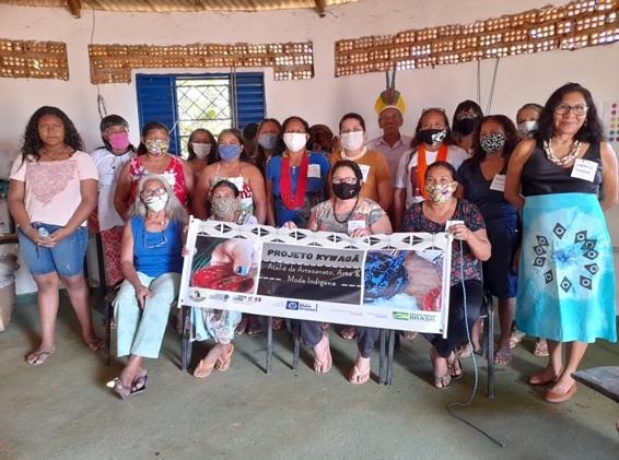 Mulheres da etnia Kurâ-Bakairi participam de oficina de modelagem de roupas
