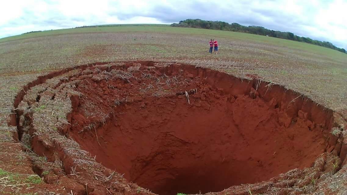 O buraco possui mais de 20 metros de diâmetro e não foi possível determinar a profundidade.