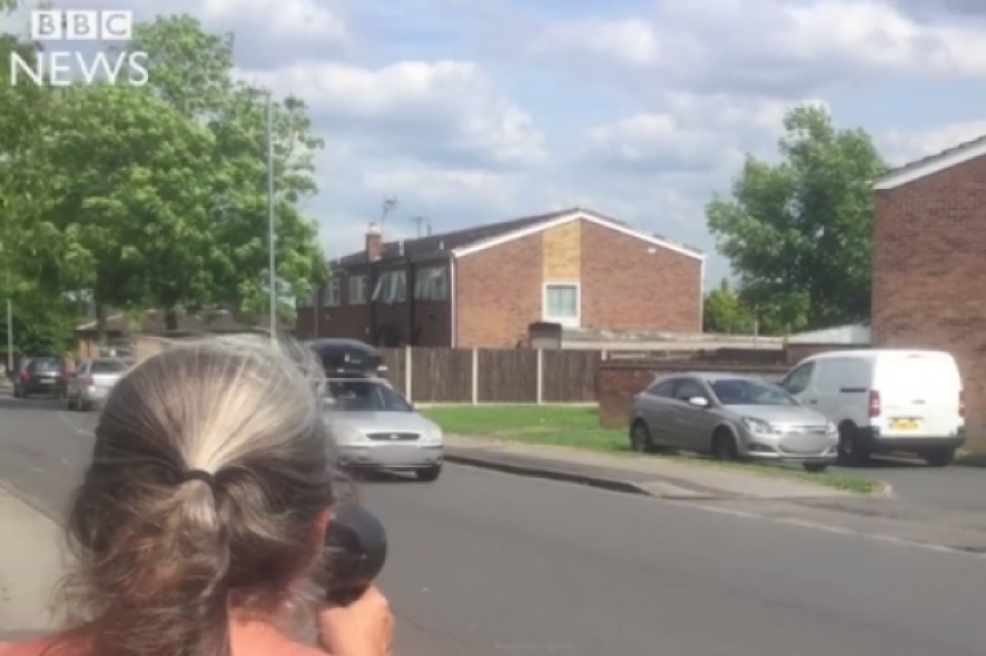 Ela fica na frente da sua casa e aponta o secador para os veículos em alta velocidade, como se fosse um radar móvel