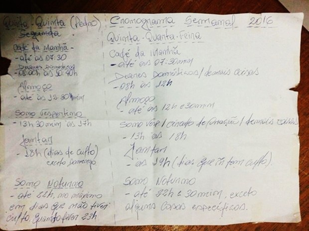 Mulher e criança de 1 ano foram resgatados pela PM nesta segunda (25).''Cronograma semanal'' estabelecia até um toque de recolher para a mulher.