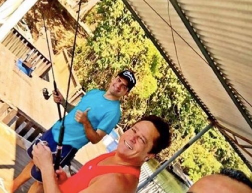Acompanhado de amigos, o sertanejo aproveitou o dia de folga para relaxar e pescar.