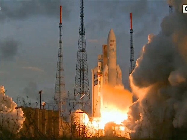 Juntos, os dois satélites pesam mais de 10 toneladas. Foguete foi lançado de base na Guiana Francesa.