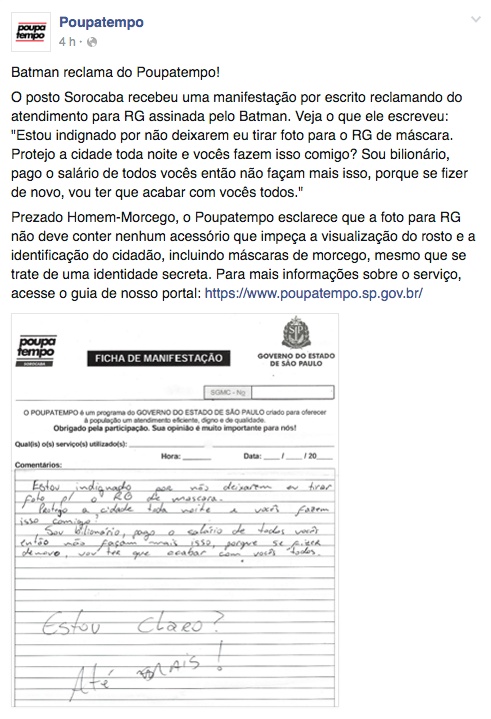 ''Batman'' é barrado ao tentar tirar RG em Poupatempo no interior de SP