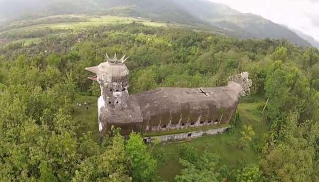 Na Indonésia, igreja abandonada atrai turistas por ter formato de galinha