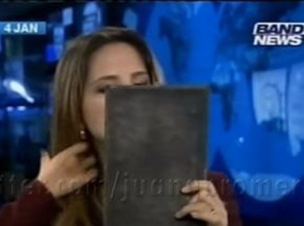 Âncora da BandNews comete gafe e se arruma com espelho no ar