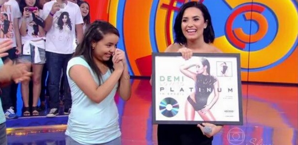A cantora americana Demi Lovato recebeu o disco de platina pelo novo álbum, 'Confident', que vendeu 40 mil cópias em apenas uma semana no Brasil.