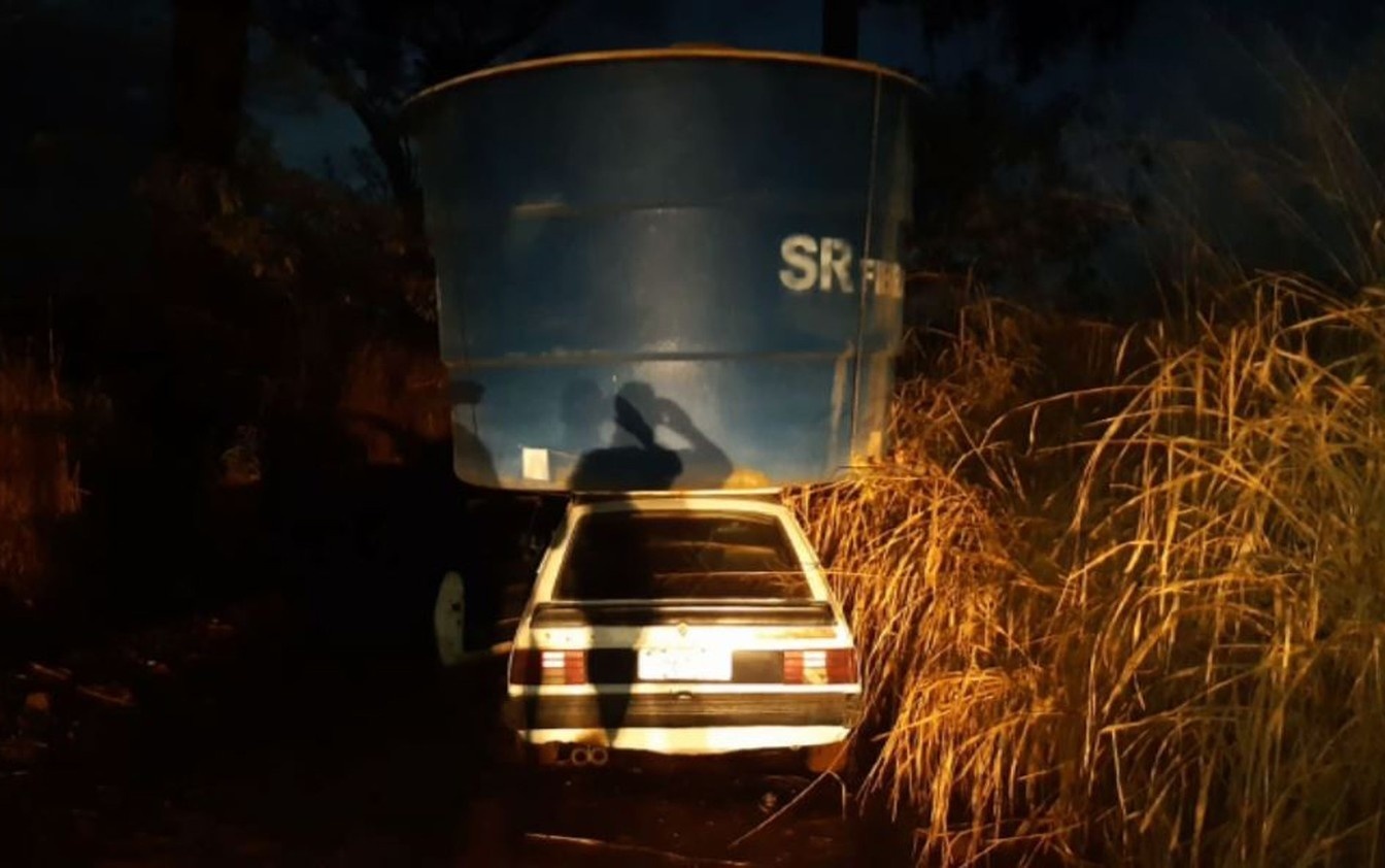 Polícia Militar flagrou recipiente no teto do veículo. Dois dos suspeitos disseram que objeto foi achado em canavial; terceiro envolvido confessou crime. Todos foram presos em flagrante.