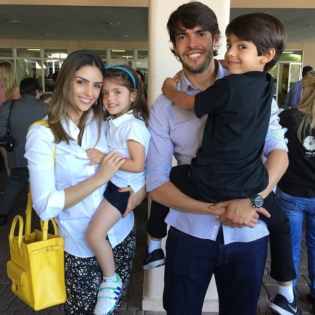 Separados, Carol Celico e Kaká se reúnem para apresentação dos filhos